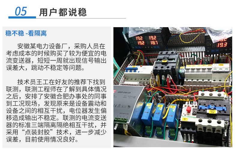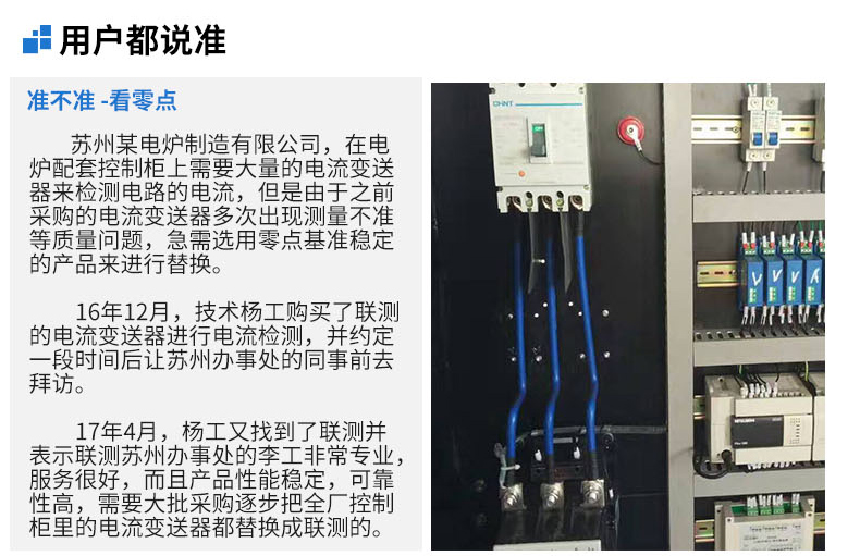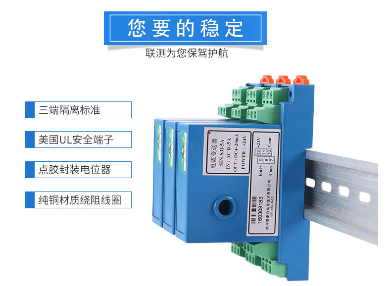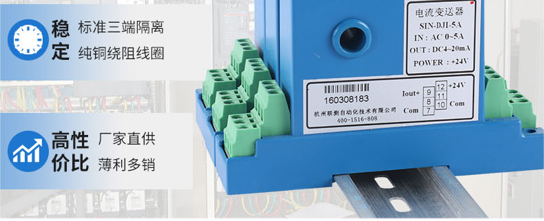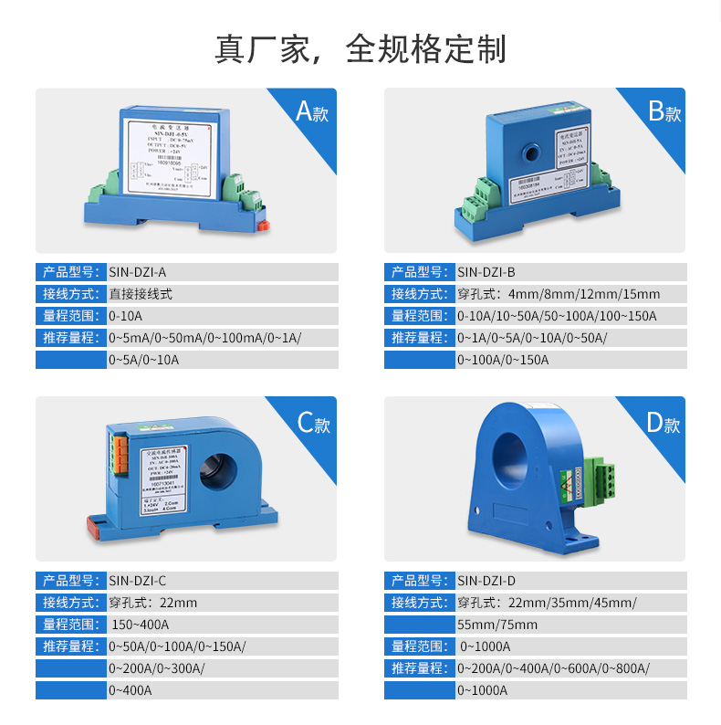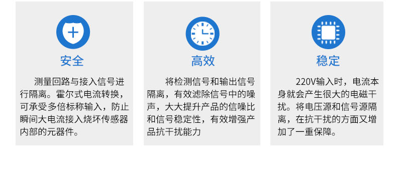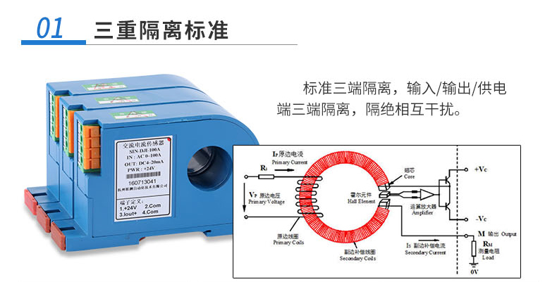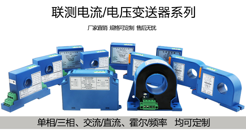 電流變送器可以直接將被測主回路交流電流或者直流電流轉換成按線性比例輸出的DC4~20mA(通過250Ω 電阻轉換DC 1~5V或通過500Ω電阻 轉換DC2~10V)恒流環標準信號,連續輸送到接收裝置(計算機或顯示儀表)。