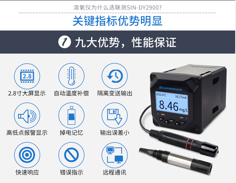 SIN-DY2900熒光法溶解氧儀是一款智能在線化學(xué)分析儀器,廣泛應(yīng)用于火電、化工、化肥、冶金、環(huán)保、制藥、生化、食品和自來水等行業(yè)中的溶解氧、飽和度和溫度的連續(xù)監(jiān)測。由于熒光法溶解氧儀采用熒光法測量溶解氧,測量時(shí)不會(huì)產(chǎn)生氧消耗,不存在干擾,不用極化,不光在復(fù)雜工況下有良好的表現(xiàn),熒光帽設(shè)計(jì)壽命可達(dá)一年以上,大大降低了維護(hù)成本。