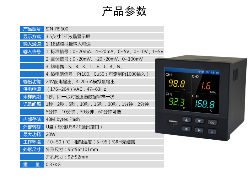 聯測SIN-R9600彩屏無紙記錄儀