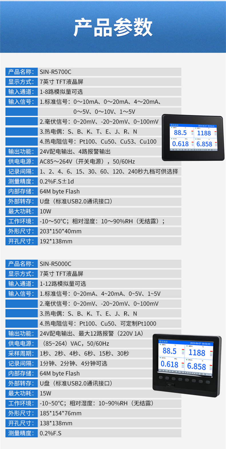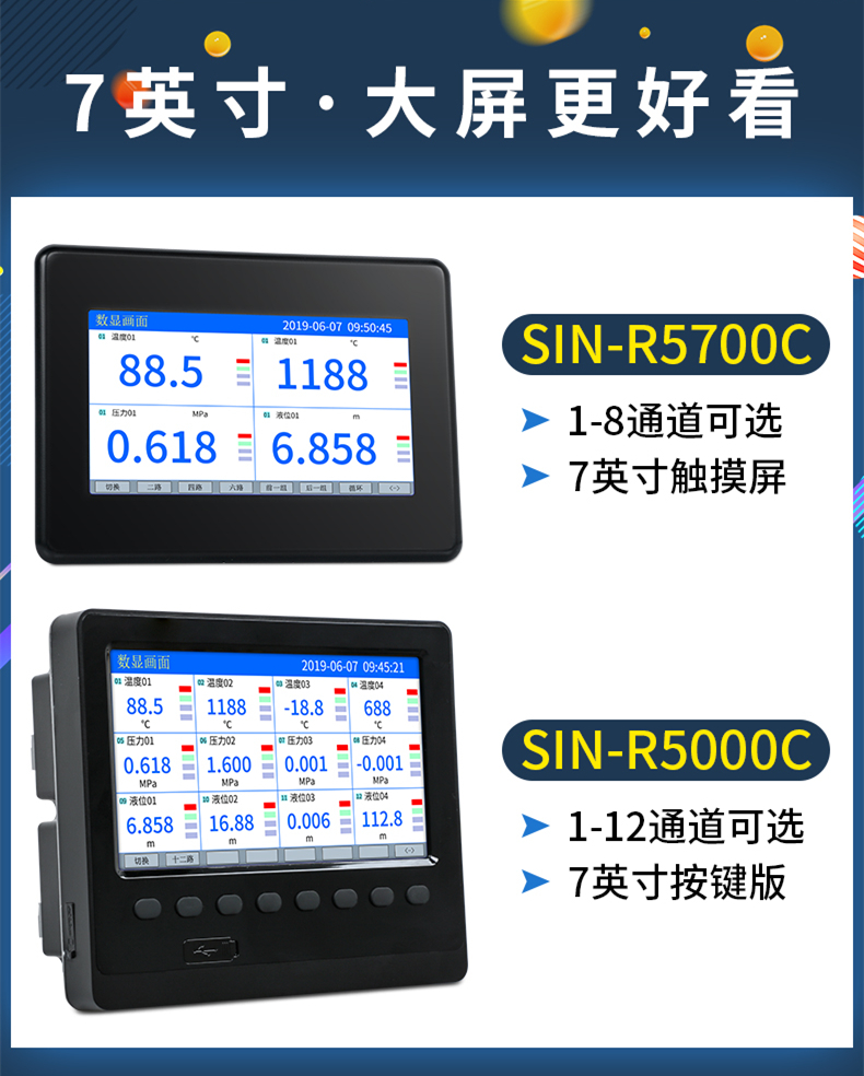 聯測SIN-R5700C觸摸屏7英寸無紙記錄儀