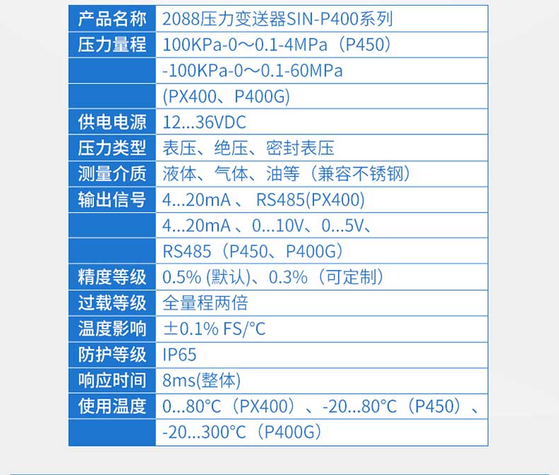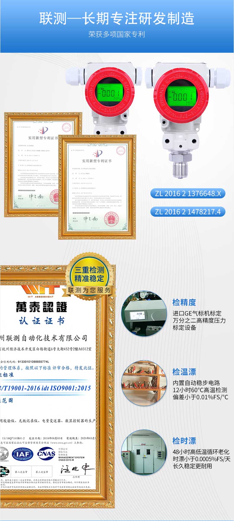聯測SIN-P400全數字電路保證精度,保證長期零點和線性穩定,現場液晶顯示,多種量程選擇,防雷擊,防射頻干擾,液晶顯示可通過按鍵調整零點和量程,方便用戶調試。
